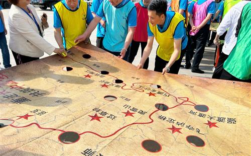 重走長征路項目,隊員們團結(jié)一致,相互配合,巧渡金沙江、強渡大渡河、飛奪瀘定橋、爬雪山、過草地、最終勝利大會師,讓在場的每一位小伙伴都重“走”了一遍長征路,讓我們大家同心共筑了中國夢!