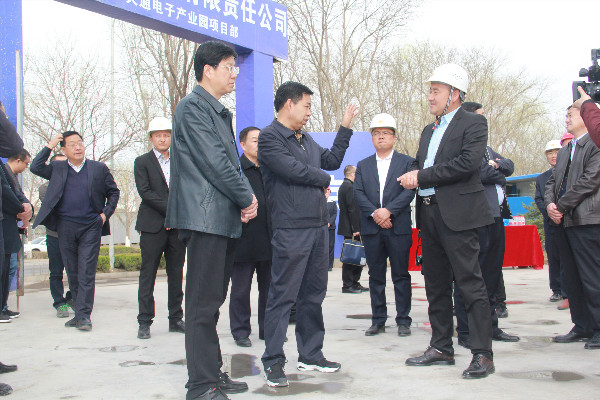 2019年3月27日下午,平?jīng)鍪形睍?、市長王奮彥、市委常委、崆峒區(qū)委書記陳鐸、市政府秘書長薛曉宏等市委領(lǐng)導(dǎo)及平?jīng)鍪泄I(yè)園區(qū)管委會(huì)主任馬春寧等園區(qū)主要領(lǐng)導(dǎo)一行人蒞臨甘肅振興·天通電子(物流)產(chǎn)業(yè)園項(xiàng)目施工現(xiàn)場指導(dǎo)工作。