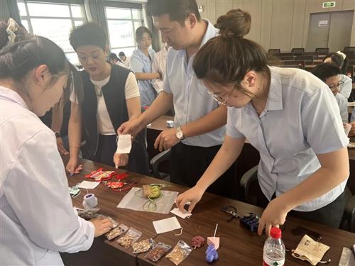 「巧手制香祈安康」:提供艾葉、藿香、紫蘇等道地中藥材及制作工具,職工們在師生指導(dǎo)下親手制作蘊(yùn)含端午文化寓意的香薰與香囊。這一環(huán)節(jié)不僅讓大家體驗(yàn)了傳統(tǒng)手工藝的樂趣,更將承載著驅(qū)邪避疫、護(hù)佑安康美好祝愿的香囊?guī)Щ丶?,將企業(yè)的關(guān)懷與祝福隨身相伴。