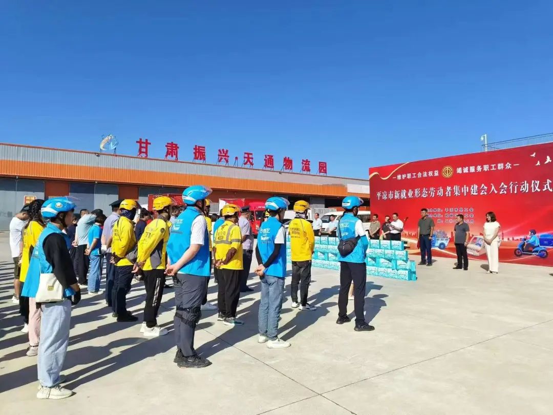 8月1日上午,平?jīng)鍪锌偣鬓k“維護(hù)職工合法權(quán)益,竭誠服務(wù)職工群眾”為主題的新就業(yè)形態(tài)勞動(dòng)者集中建會入會行動(dòng)儀式。此次啟動(dòng)儀式在平?jīng)鍪泄I(yè)園區(qū)振興天通物流電子產(chǎn)業(yè)園內(nèi)舉辦,市總工會和各縣(市、區(qū))、平?jīng)龉I(yè)園總工會負(fù)責(zé)人,相關(guān)市直系統(tǒng)工會負(fù)責(zé)人,振興運(yùn)輸行業(yè)工會貨車司機(jī)、網(wǎng)約車司機(jī)代表等全市100名新就業(yè)形態(tài)勞動(dòng)者代表參加活動(dòng)。